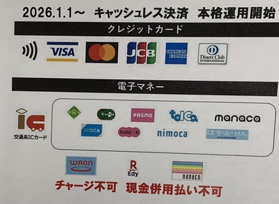 2026年1月1日よりキャッシュレス決済の本格運用が始まりました。・5大クレジットカード(タッチ...